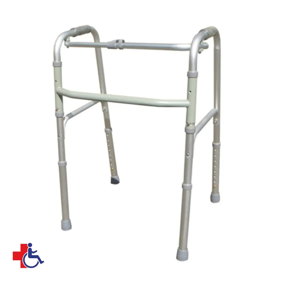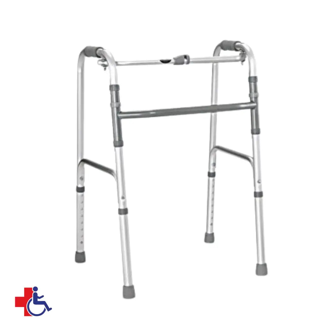 El andador plegable es una estructura tubular metálica, articulada y plegable con regulación de altura, que facilita la marcha y aporta una estabilidad mayor, en el desplazamiento, versus el bastón y las muletas, ya que tiene varios puntos de apoyo. Posee empuñaduras de goma suave de alta densidad, anatómicas, antideslizantes y ergonómicas. Producto sencillo de manipular, ofrece una total seguridad, permite al usuario caminar sin miedo a caerse y con solo oprimir un botón, ubicado en su parte superior, puede plegar el producto.