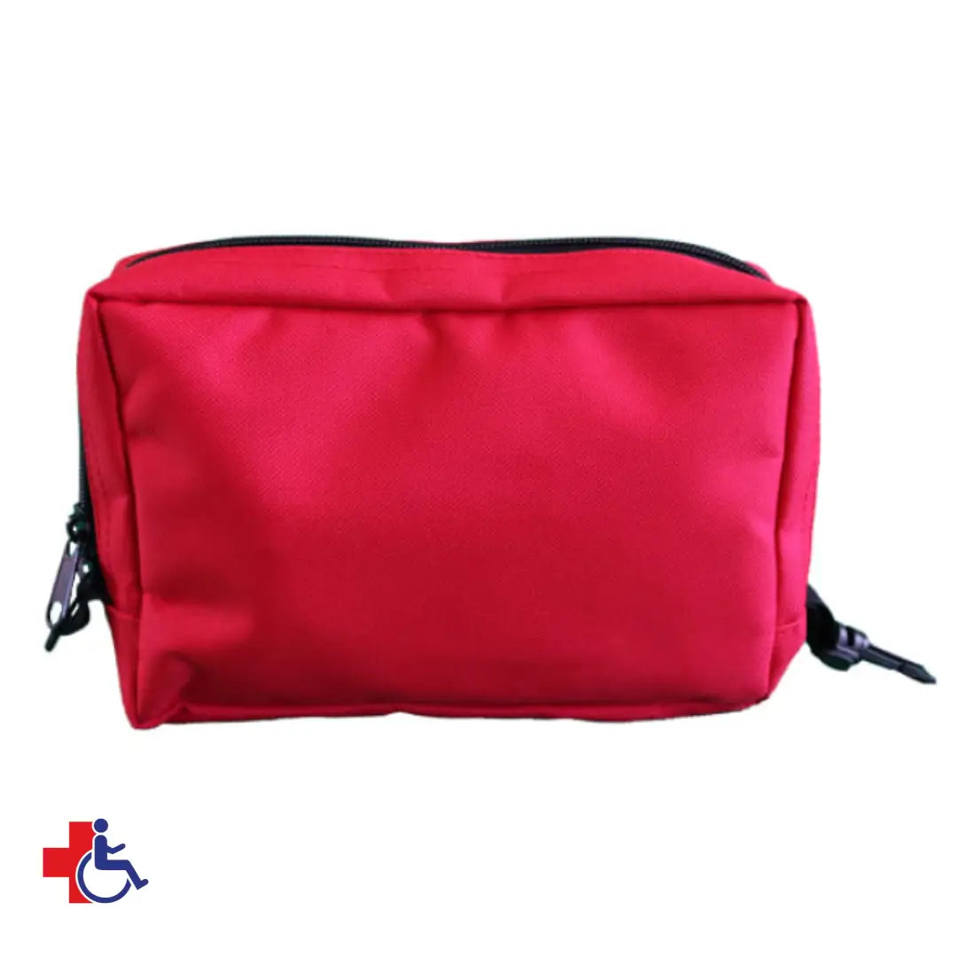 Bolso de primeros auxilios color rojo, compacto y resistente, ideal para organizar y transportar insumos médicos. Fabricado con material durable y lavable, cuenta con cierre seguro. Práctico bolso botiquín multiuso, incluye mosquetón para engancharlo en cinturones, mochilas o similares. Ideal para llevar en vehículos, dentro de mochilas o en lugares con espacio reducido. Su tamaño funcional (26 x 17 x 5 cm) lo hace perfecto para cualquier entorno.